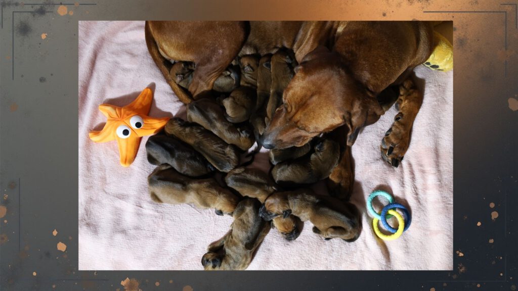 In der Nacht von Montag den 06.10. auf dem 07.10.2025 hat Ulla ohne Komplikationen ihre Babys bekommen. 8 Jungs und 6 Mädchen erblickten das Licht der Welt.